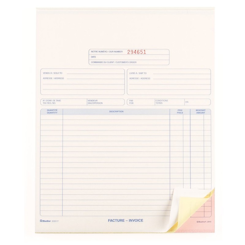 Blueline Invoices 50 Numbered Carbonless Triplicates Bilingual 8-1/2-Inchx11-Inch (DCB177)