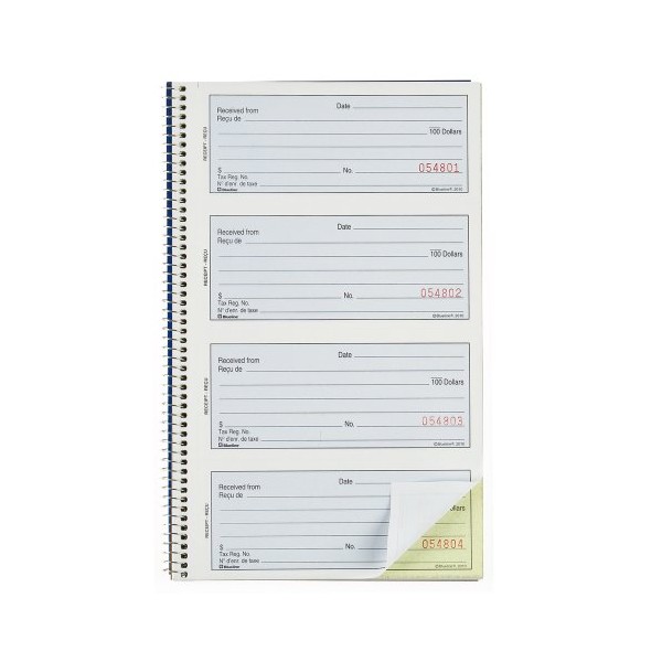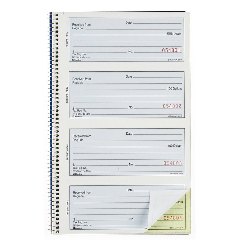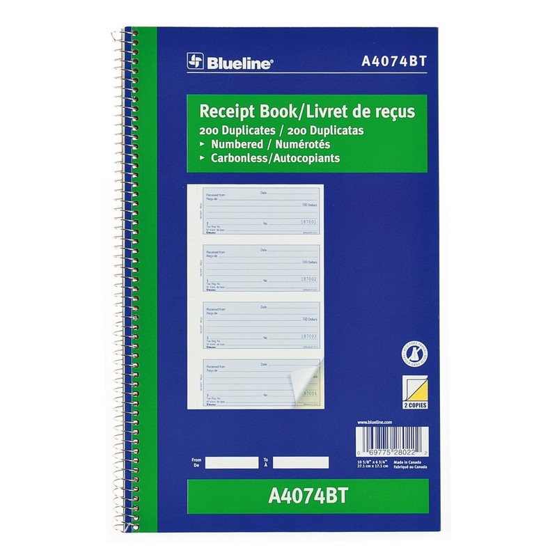 Blueline Receipt Book, 200 Numbered Duplicates, Carbonless, Bilingual 10-5/8" x 6-5/8" (A4074BT)