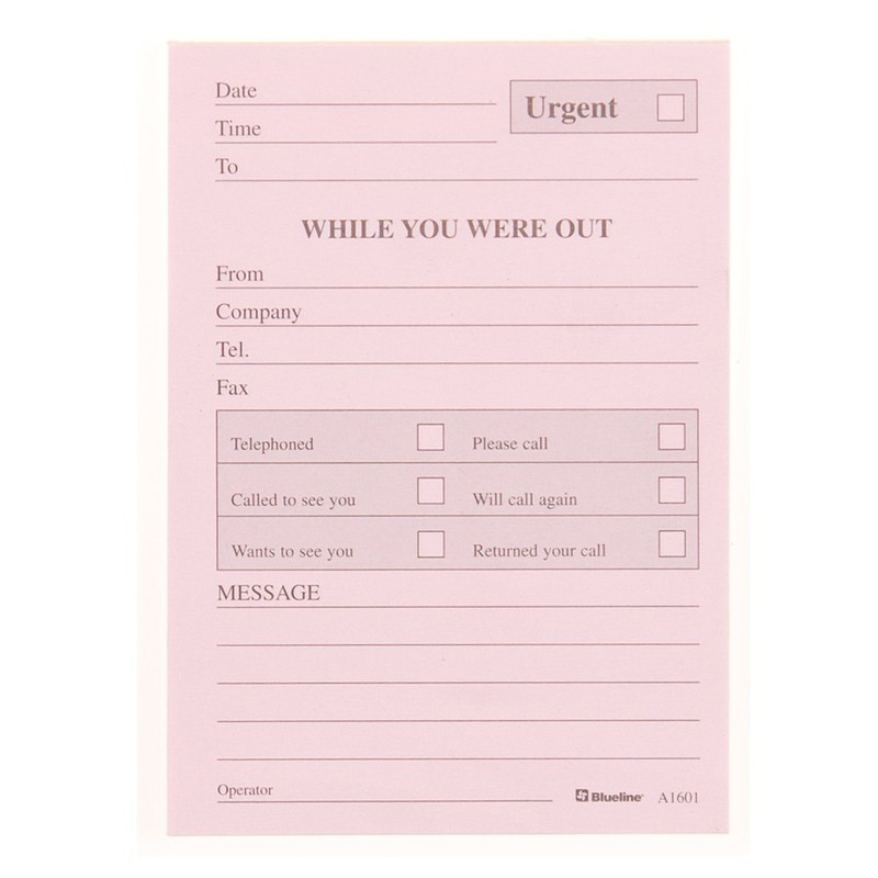 Blueline Telephone Message Pad While You were Out Format 50 Sheets Pink English 3-1/2-Inchx5-Inch (A1601)