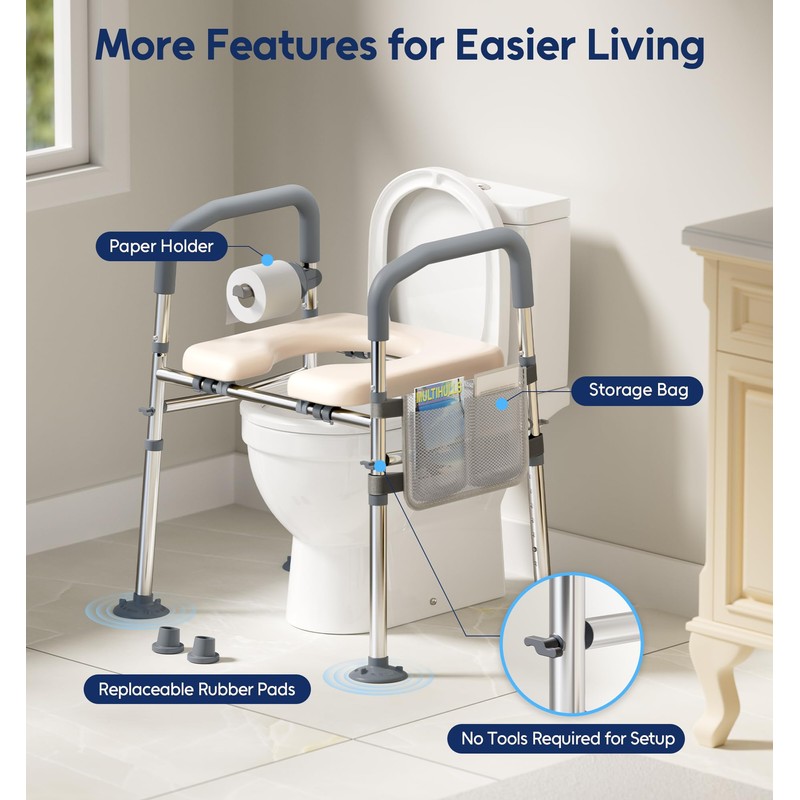 - Thoughtful Details for Extra Convenience: Keep necessities within reach with the built-in toilet paper holder and convenient storage bag. Replaceable rubber feet provide extra stability, adapting to uneven floors and tight spaces