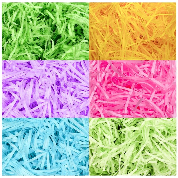 • 🎁 Generous quantity: the pack contains 300 g green Easter grass in 6 classic colours, enough for filling 4 baskets.