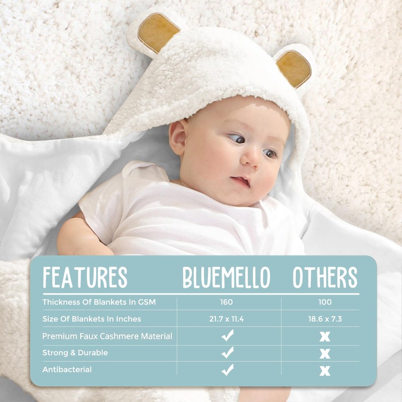 BlueMello Baby Bear Swaddle Blanket | Ultra-Soft Plush Essentials for Infants 0-6 Months | Receiving Swaddling Wrap White | Ideal Newborn Registry and Toddler Boy Accessories | Perfect Baby Girl Shower Gift