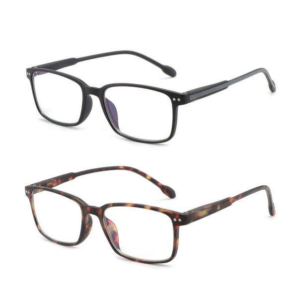 BLUEMOKY Blue Light Reading Glasses Men Women, Computer Glasses 2 Pack, Bluelight Blocking Reader, Rectangle Frame, Anti Eyestrain 225