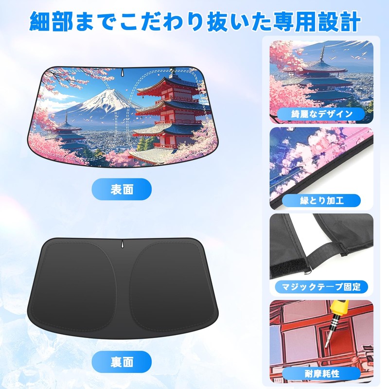 - 2. Attractive Patterns: The most fashionable front sunshade in 2025. We manage our company's popularity from the development of fabric, manufacturing, distribution and quality control. The popular cherry blossom and Fuji scenes are 3D printed. The special design makes every car the main role, and you can enjoy the view of Mt. Fuji and Sakura every day in your car. It will make the front of your car look stylish