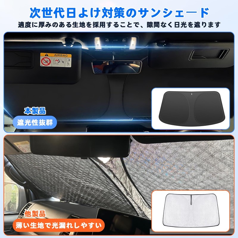 - 3. UV Protection, Heat Insulation, and Interior deterioration: This specially designed front sun shade is made of high quality material that fits your car perfectly. It has 3 key functions: sun blocking, cooling and heat retention. It acquires 99% blackout rate. It has obtained 99% light shielding rate by a third party testing agency to reduce heat in the middle of the summer, shut out the sun and reduce the temperature of the car interior. Protect your car from the cold of winter. It is also easy to install and folds up compactly for storage for everyday convenience. Try this car sun shade to add extra comfort to your ride