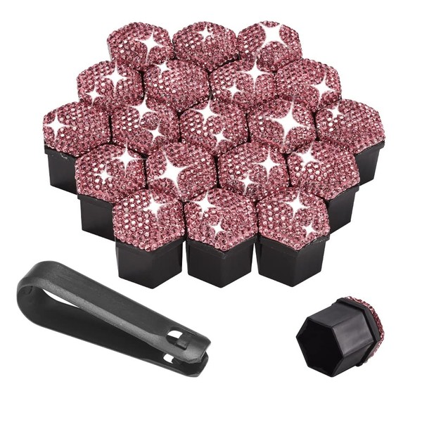 Blueshyhall 21mm Wheel Lug Nut Cover Bolt Caps with Removal Tool (Pack of 20) - Pink