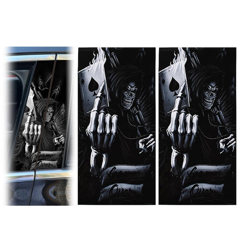 Blueshyhall Blueshyhall B S?ulen Aufkleber Auto Totenkopf Motiv, 2 Stck Mittels?ule Aufkleber Schwarz mit Sch?del Muster Kratzfest Wasserfest, Coole Auto Aufkleber Seiten Skull Car Tuning Sticker (B)