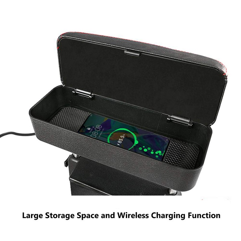 Blueshyhall Car Center Console Organizer Armrest Storage Box Holder Container, Black Leather Arm Rest Wireless Charger