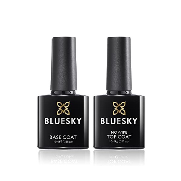 Bluesky No Wipe Top Coat and Soak Off Base Coat Bundle, 10 ml (Requires Drying Under UV or LED Lamp) (Base Coat+No Wipe Top Coat)