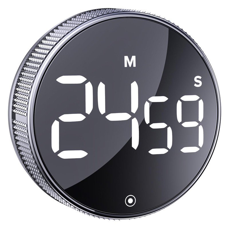 BlueSnail Kitchen Timer, Productivity Timer with LED Digital Display, Smart Timer for Home Classroom Gym Office, Volume and Brightness Adjustable Efficana Timer (Silvery)