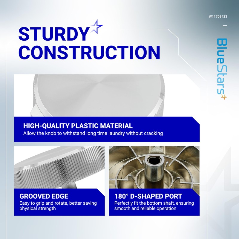 - Enhanced control: BlueStars W11708423 Control Knob is designed to provide smooth and precise operation, giving you full control over your laundry routine. Please replace your Control Knob immediately when you see these problems: The control knob is missing; The knob is broken or damaged; Knob is not rotating or not working.