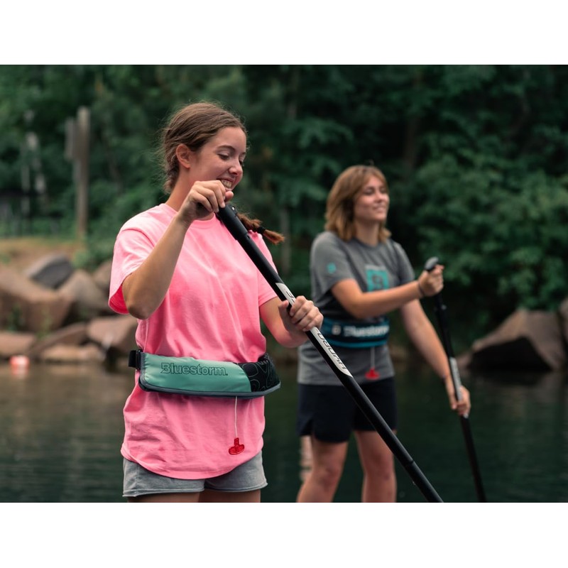 CIRRO 16: The Bluestorm Gear Cirro 16 Manual Inflatable Life Jacket Belt is a US Coast Guard approved hip belt pack PFD that will keep you safe and comfortable. Its convenient, slim, minimal, and packable design is perfect for SUP paddleboarding, kayaking, canoeing, and anglers. This USCG approved life vest waist belt floatation deploys manually with a pull cord using an included CO2 cartridge with the secondary option of oral inflation for additional buoyancy. The mesh and soft-touch memory foam keeps you comfortable while the 2" thick webbing keeps you safe and secure. Features D-ring attachment points and pockets. Designed for adult men and women, this life belt fits small, medium, large, xl and xxl sizes. Choose from multiple color options: deep navy blue, red, hi vis green, and teal. Type 5 convertible with Type 3 performance.