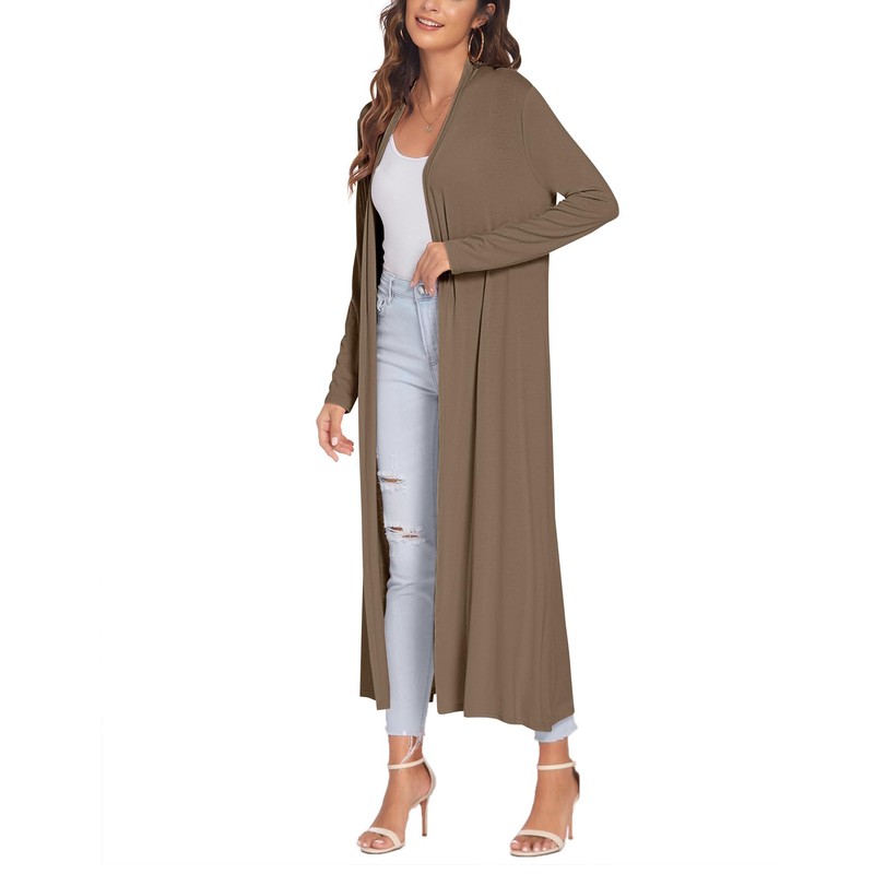 Bluetime Women Floor Length Open Front Cardigan Lightweight Long Sleeve Maxi Duster with Pockets (XXL, Nutmeg)