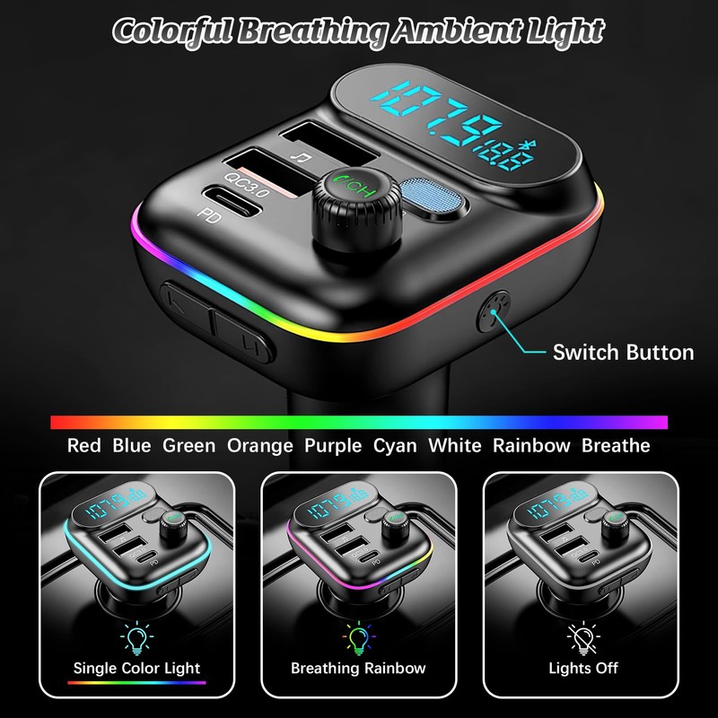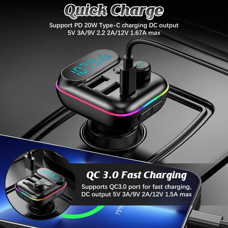 - Blitzschnelles 3-Fach-Laden Mit QC3.0 & PD 3.0: Dank dualer USB-Anschlüsse (QC 3.0) und einem USB-C-Port (PD 3.0) lädt der FM-Sender bis zu drei Geräte gleichzeitig mit maximaler Geschwindigkeit. Ideal für Smartphones, Tablets oder Kopfhörer mit Quick Charge- oder Power Delivery-Unterstützung – volle Leistung ohne Wartezeit