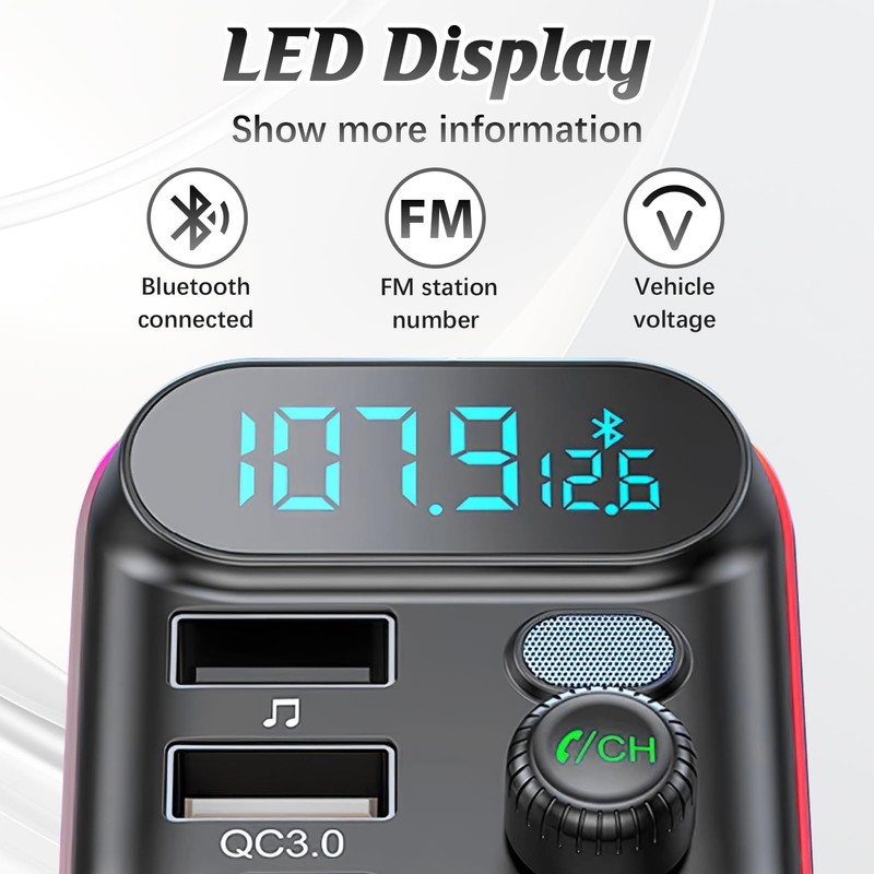 - Sicherheitscheck, Echtzeit-Spannungsanzeige: Überwachen Sie die Autobatterie direkt am Display und vermeiden Sie unerwartete Ausfälle. Der FM-Sender warnt frühzeitig vor Spannungsschwankungen – besonders wichtig bei langen Fahrten oder kalten Wintertagen