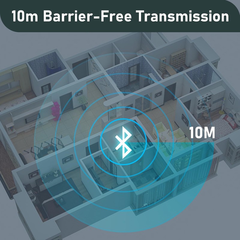 - Der integrierte Bluetooth 5.1-Chip sorgt für eine stabile, schnelle Verbindung mit einer Reichweite von bis zu 10 Metern. Genießen Sie unterbrechungsfreie Übertragung, hohe Klangqualität und geringe Latenz – ideal für Musik, Podcasts oder Telefonate.