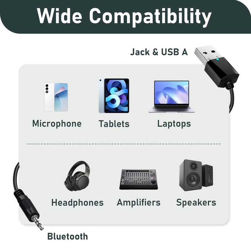 - Wichtiger Hinweis: Der Adapter dient ausschließlich zur Audioausgabe – kein Audioeingang oder Bluetooth-Senden. Stellen Sie sicher, dass Ihr Gerät Bluetooth unterstützt, bevor Sie den Adapter verwenden.