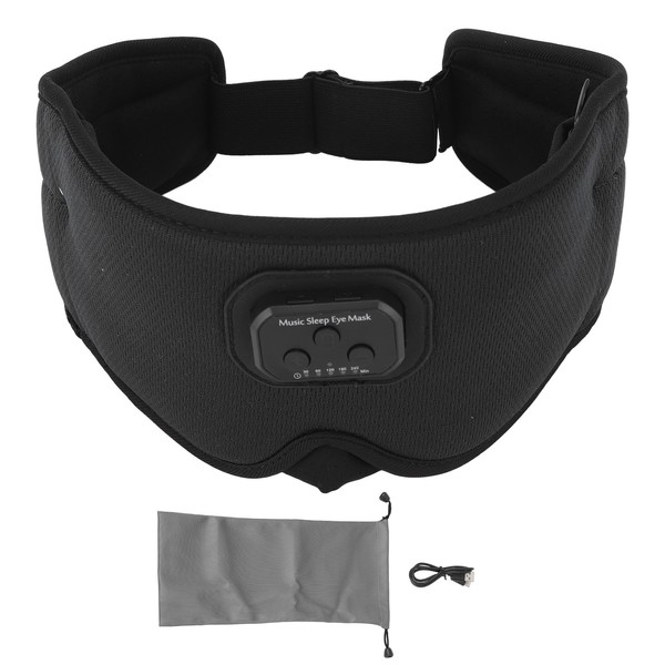 Bluetooth 5.2 Sleep Headphones Wireless 3D Sleeping Eyeshade Music Headphones for Side Sleeper with 20 White Noise Timing Black