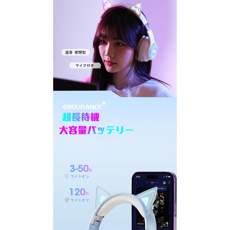 - Cute Cat Ears, LED Lights: The cat ear design is cute, and the LED light is equipped with Bluetooth headphones that flash to match the rhythm and change the color, and dance to match the music and instantly enhance the atmosphere when gaming. Sparkling and very cute
