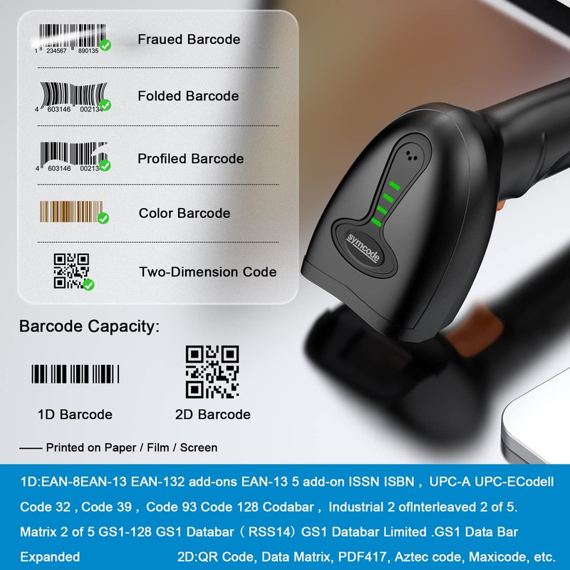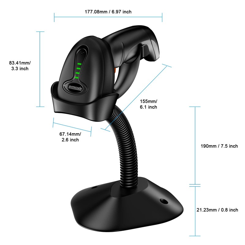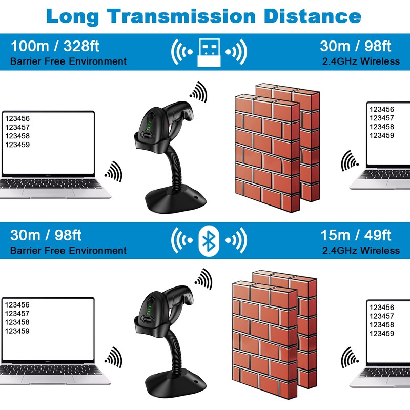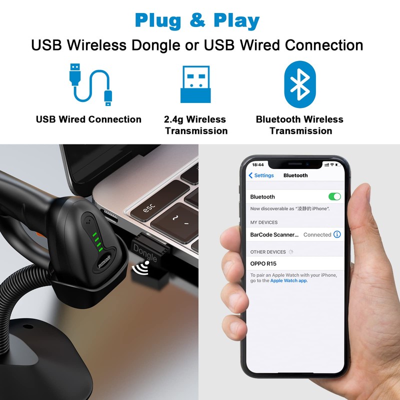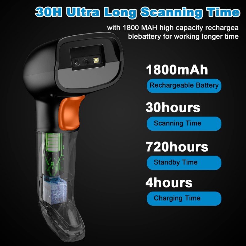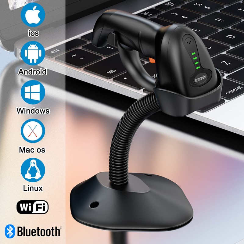 - Wireless Bluetooth Barcode Scanner with Stand, without dragging boxes anywhere in the store without dragging next to the computer ,helps you business run smoother without error .