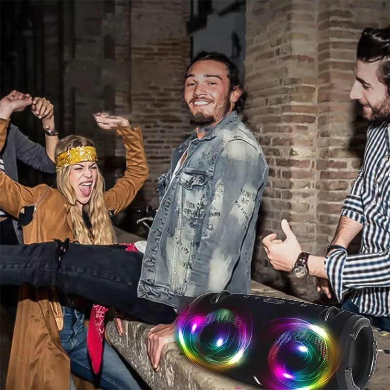 Bluetooth Bocina Bocina Bluetooth Radio Fm Portatil Recargable Luz Led Usb Color Gris