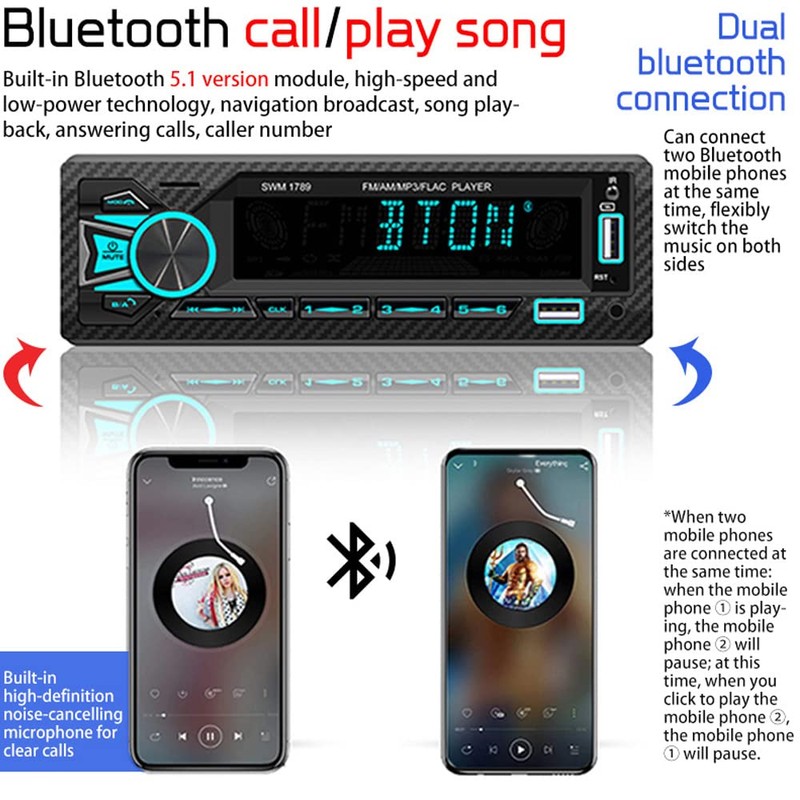 - Built-in Bluetooth & FM AM Function: Built-in Bluetooth, pair two phones at the same time, receive and send hands-free calls without disturbing while driving, and play Bluetooth music. This greatly improves safety. Driving FM 87.5~108MHz / AM 522~1620KHz can search channels automatically