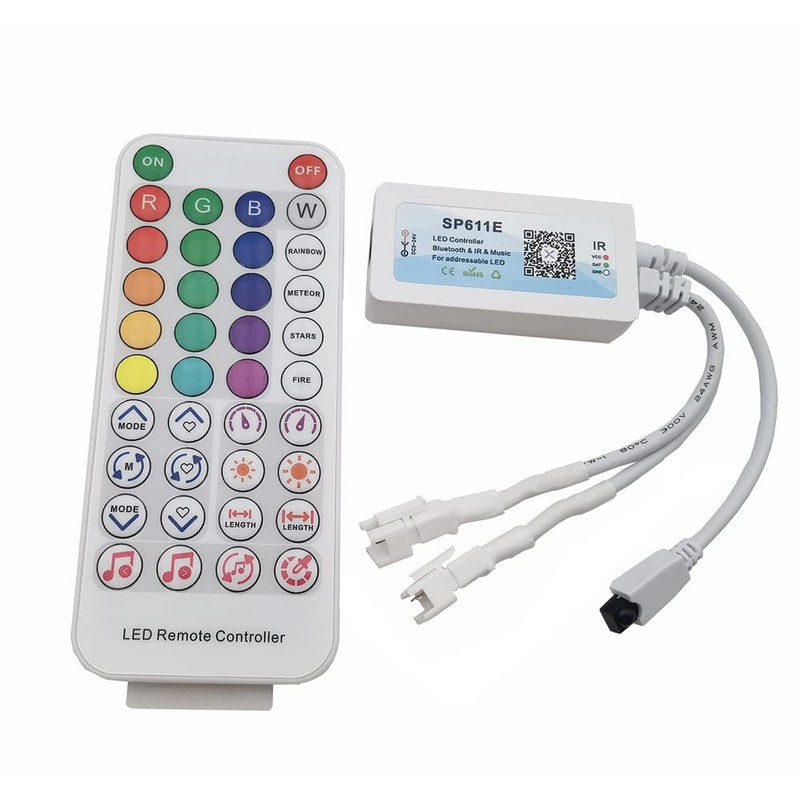 Bluetooth Controller SP611E LED Strip Light Controller with 38 Buttons IR Remote Control for WS2811 WS2812B RGB LED 3-Pin Strip LED Strip Smart Phone App Control for iOS and Android
