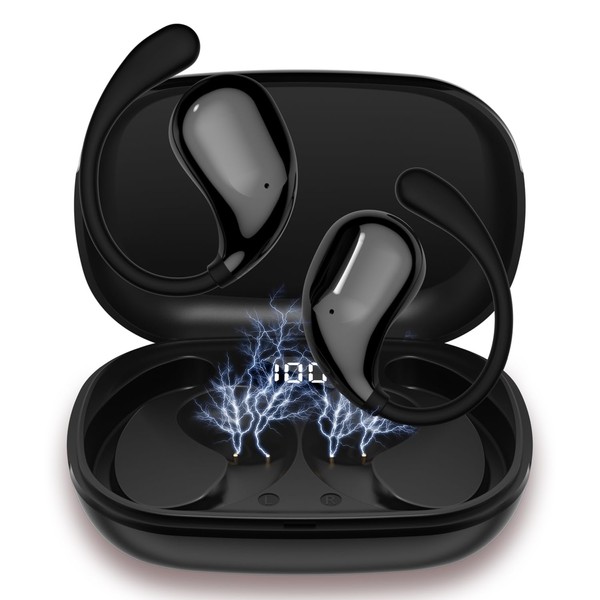 Bluetooth Earphones, Small / Lightweight, IPX7 Waterproof, Wireless Earphones, Open Earphones, 48 Hours Playtime Deep Bass, LED Display Display, Bluetooth Instant Connection, Hi-Fi Bluetooth Earphones