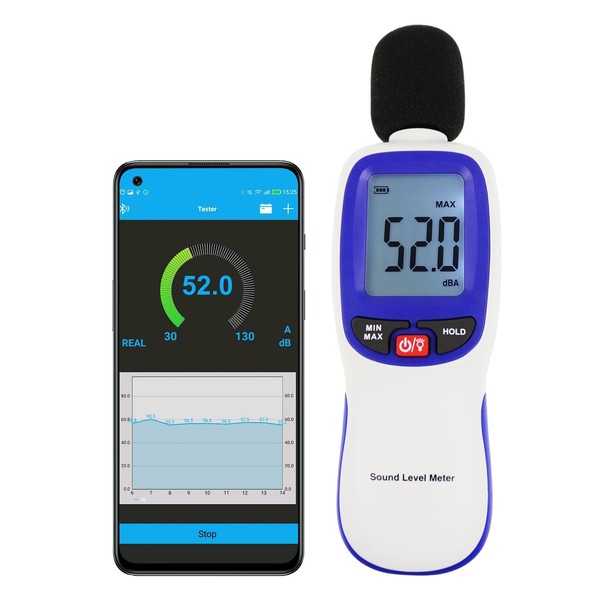 - Bluetooth connection: with Bluetooth technology and the dB tester app, this sound level meter connects seamlessly with your smartphone. Compatible with iOS systems, it allows remote monitoring of sound levels and provides a convenient and reliable decibel meter for precise measurements.