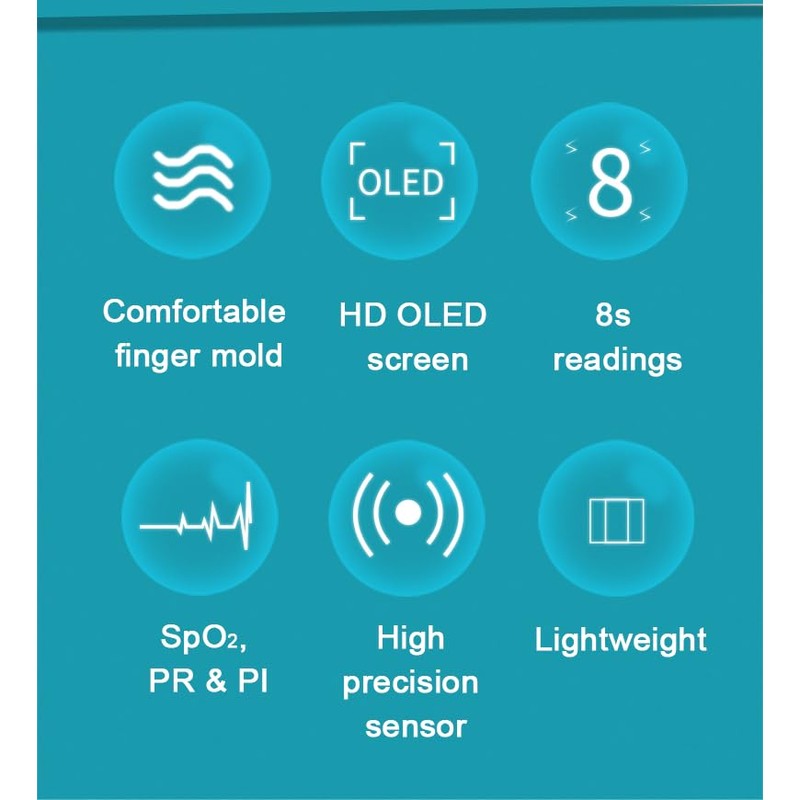 - 【ACCURATE AND RELIABLE】 The device provides you with accurate measurement of oxygen content (Sp-O2), pulse rate, pulse strength and pulse waveform. The large OLED screen makes it easy for you to read.
