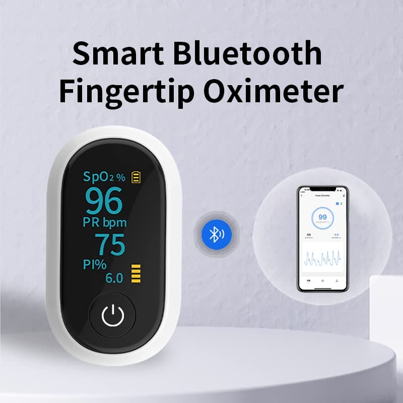 Bluetooth Fingertip Pulse Oximeter, Blood Oxygen Saturation Monitor and Pulse Rate Monitor for Apple and Android, With OLED Screen