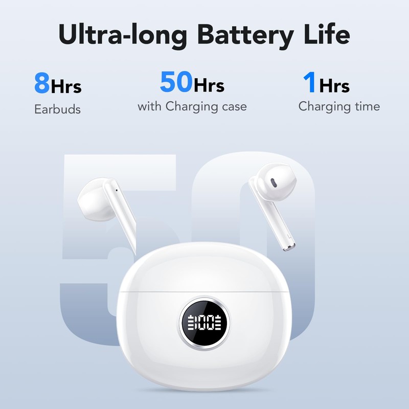Bluetooth Headphones, Bluetooth 5.3 Earphones with Immersive HiFi Stereo, Built-in Mini Wireless Headphones 4 HD Mic, IP7 Waterproof Bluetooth Headphones, 50 Hours Playtime and LED Display