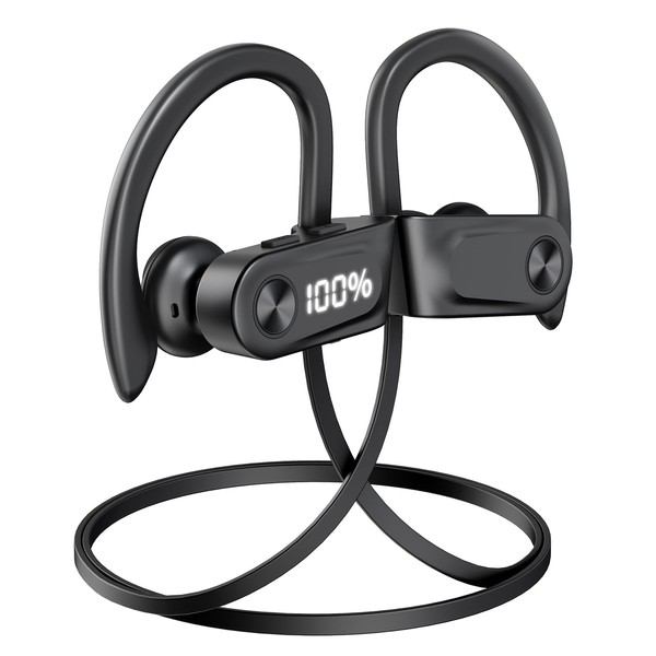 Bluetooth Headphones Wireless Earbuds with Spatial Audio Bluetooth 5.4 IPX7 Waterproof Headphones with Digital Display Deep Bass Stereo Sound Isolation Running Earphones for Sports, Gym, Workout