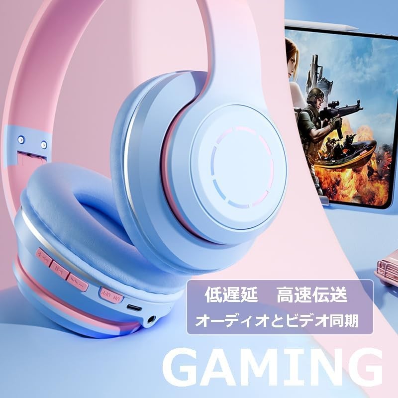 Bluetooth Headphones, Wireless Headphones, Enclosed, Deep Bass, Over-Ear Headphones with Microphone, Foldable, RGB LED, Wired, Wireless, Compatible with Memory Cards, Cute, Gift,