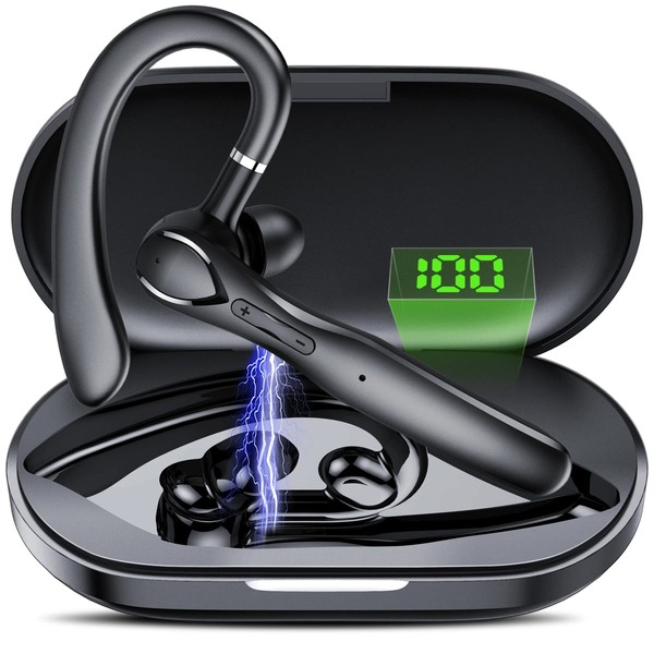 CASCHO Bluetooth Headset, Bluetooth Earpiece with LED Display Charging Case,100H Playtime Headset Wireless BT V5.3, Wireless Headphone with Microphone Noise Cancelling, for Driving/Business/Office