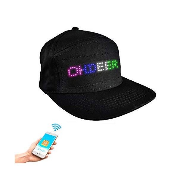 - ✌Funned LED Hat ever!✌ Stylish Bluetooth LED hats are made of 100% cotton,soft and breathable.Adjustable button design, adjusting the size of convenience. Easy to on-off: 3 second to open the button,3 seconds to close button.Detachable LED screen,LED screen size:150×37mm