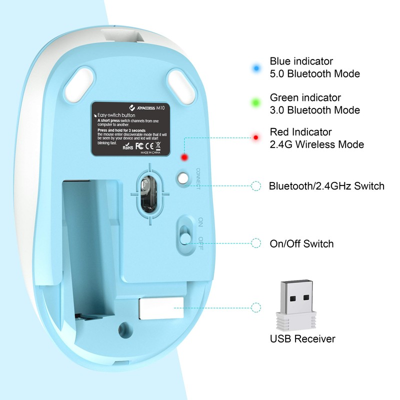 Bluetooth Mouse, JOYACCESS 2.4G Wireless Bluetooth Mouse Dual Mode(Bluetooth 5.0/3.0+USB), Computer Mice for Laptop/ Computer MacBook/ Windows/ MacOS/ Android - Blue