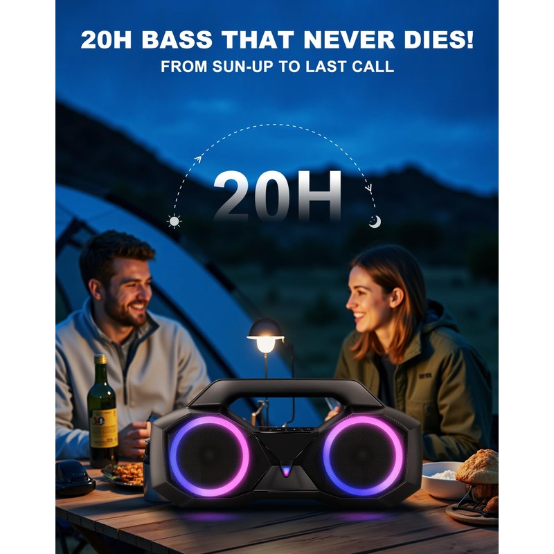 - 20H BATTERY LIFE: This large bluetooth speaker without constantly searching for a charger, allowing you to enjoy music from sunrise yoga to midnight campfire stories. Perfect for road trips or music festivals.