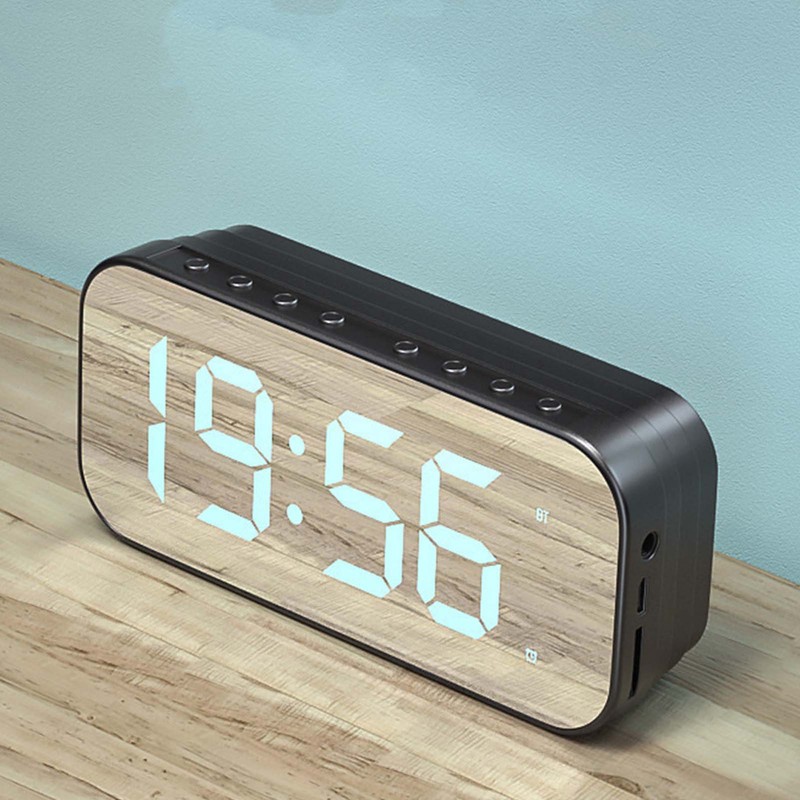 Bluetooth Speaker Alarm Clock Digital Clock with Bluetooth Speaker Mirror Digital Display Alarm Clock for Bedroom Office Black