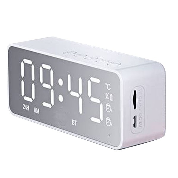 Bluetooth Speaker Alarm Clock Multifunction Electric Alarm Clocks Mirror Surface with Dual Alarms for Home Bedroom White
