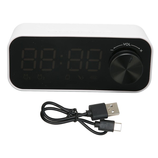 Bluetooth Speaker Alarm Clock Radio Digital LED Display Subwoofer Mini Mirror Bluetooth Speaker Alarm Clock for Bedroom White