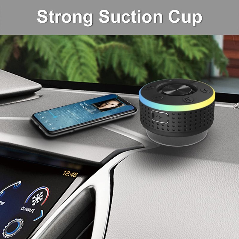 - Additional Features: This portable speaker bluetooth is ultra compact and easy to carry around. Therefore, whether indoors or outdoors, you can carry it and enjoy beautiful music. With a solid Suction Cup, attach tightly to bathroom tiles, boats, and any flat surface. The bluetooth speaker features a built-in microphone that enables hands-free calling, allowing you to have conversation without holding your phone.