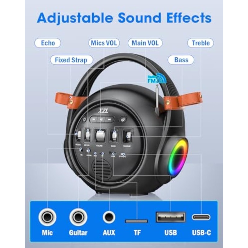 Bluetooth Speaker with 2 Wireless Microphones Portable Karaoke Machine