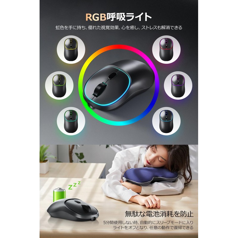 Bluetooth Wireless Mouse, Multi-Connection, Bluetooth 5.2, Wireless Mouse, 3 Stage DPI Switch, 2.4 GHz, Silent Mouse, Ambidextrous, Ambidextrous, Power Saving Model, Thin, Highly Sensitive, RGB