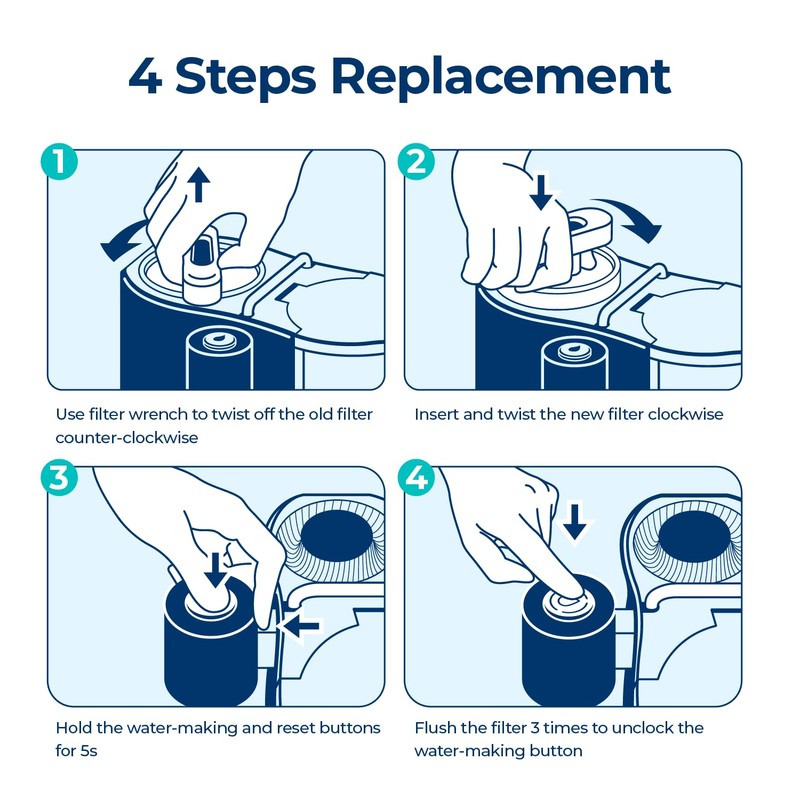 - EASE TO REPLACE: With Bluevua twist and lock design, you can replace the filter within 3 seconds. Enhancing ease further, the included handy wrench in your unit streamlines the process, ensuring breeze-like replacement every time.