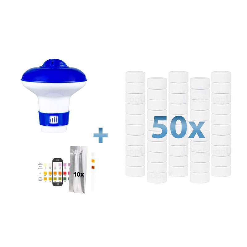 BLUEWATER SMALL MULTIFUNCTIONAL 50 X 20G TABLETS + FLOATING DISPENSER + 10X TEST STRIPS