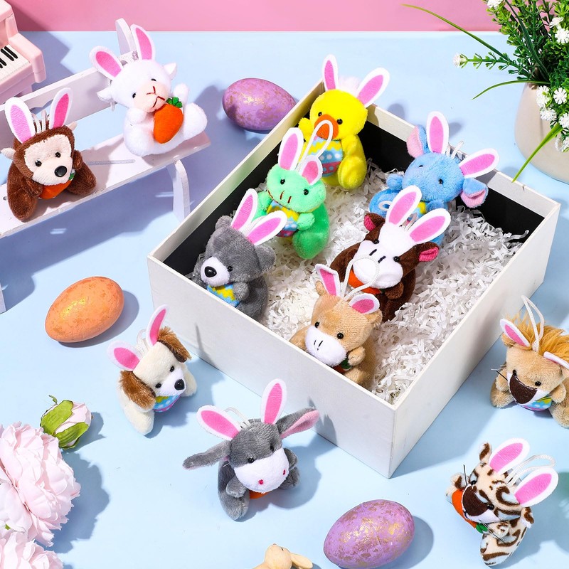 - Cute Design: easter plush animal bulk includes 12 different animal characters with bright colors and vivid images; The animals wear bunny ear headbands on their heads and hold carrots and Easter eggs in their hands, adding diversity and vitality to your celebration