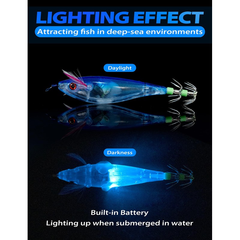 - Two Styles - Lighted and Non-Lighted: Choose between the lighted version with a water-activated, built-in battery for enhanced visibility in deep or murky waters, or the non-lighted version with two glow beads at the tail, also perfect for night fishing. Both styles are crafted to maximize attraction and effectiveness in different fishing conditions