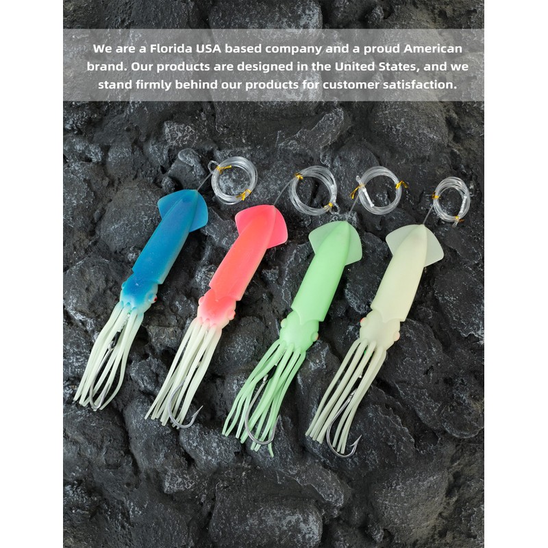 - Nighttime Visibility - Even when the lights are off, our squid lure remains visible in the dark waters, thanks to its luminous properties. Fish won't be able to resist its subtle nighttime allure.