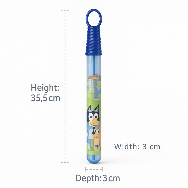 - 🫧 Create Magical Large Bubbles – Designed with a wide bubble wand, this Bluey Bubble Maker allows kids to create big, beautiful bubbles with every wave.